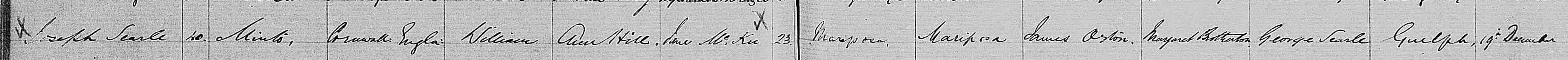 Approaching the 1850s and into the 1860s, with the Searle and McGinn ancestors having already migrated to North America, the historical records become much more useful. Most of the records contain the maiden name of the women contained in them: birth records contain the maiden name of the mother and marriage records, contain both the maiden name of the bride as well as the maiden name of the bride and grooms mothers. This additional information makes it possible to provide a 100% accurate link between an ancestor and their descendant.