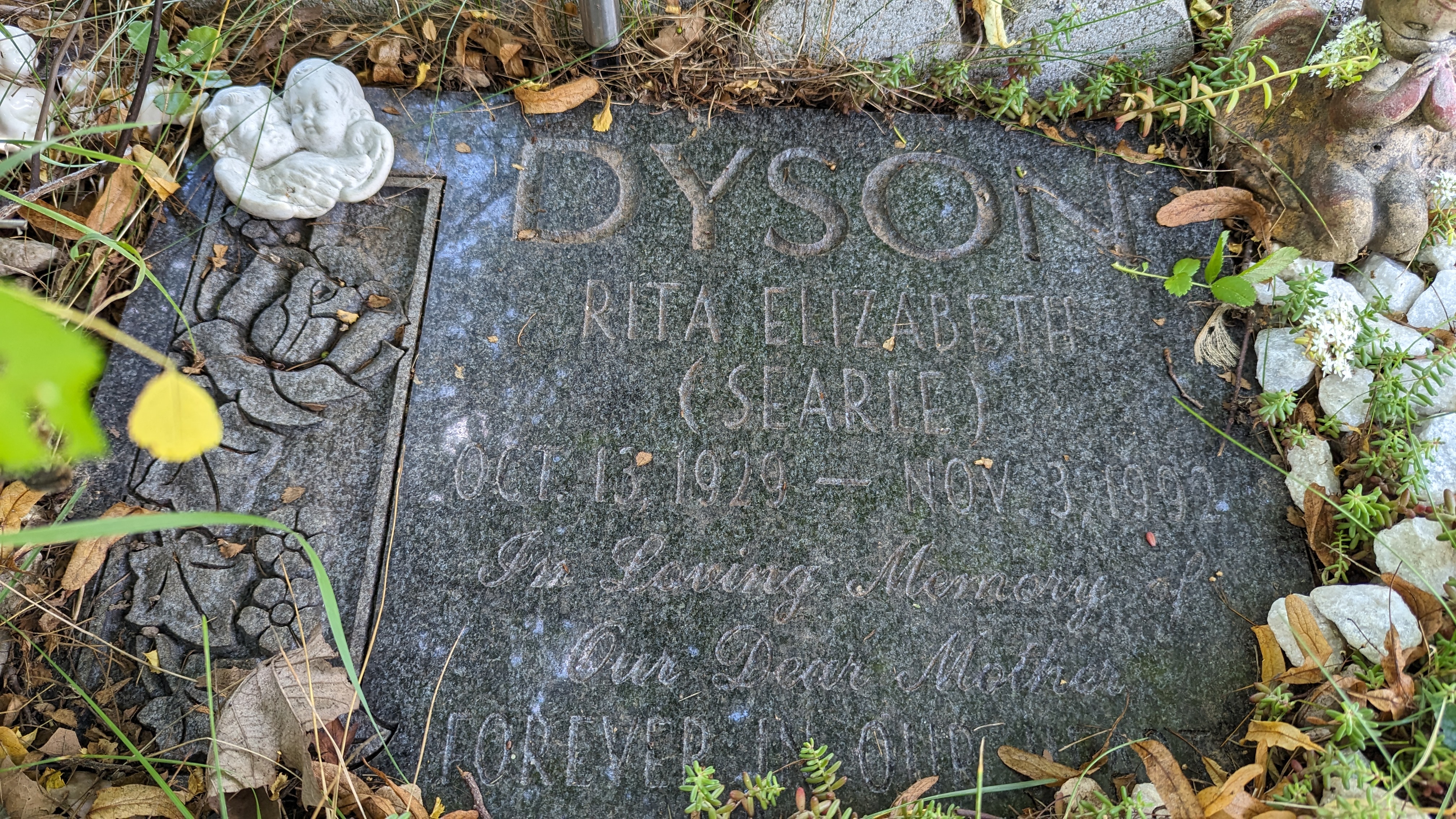 "DYSON - Rita Elizabeth. At the Guelph General Hospital on Tuesday, November 3, 1992. Rita Elizabeth (Searle) Dyson, age 63 years. Beloved wife of the late Thomas Dyson (1990). Loved mother of Dianna Ferguson of Guelph, Daniel and his wife Wilma of Fergus, Janet and her husband James Grogan of Elora, David and his wife Deborah of Elora and Renee Ritchie of Guelph. Dear grandmother of eight grandchildren, Melissa, Mary, Tyler, Zackary, Maryka, Kristen, Travis, and Elliott. Dear sister of four sisters, Gen Thurlow, Violet Woods and Kay Frellick all of Guelph and Patricia Redwood of Detroit, Michigan, and two brothers Arthur Searle of St. Catharines and William Searle of Welland. Predeceased by one sister Eileen Noble. Survived also by many nieces and nephews. Resting at The Gilbert MacIntyre & Son Funeral Home, 252 Dublin Street North, Guelph, (after 7:00 p.m. Wednesday). Funeral on Friday, November 6, 1992 to Sacred Heart Church for a funeral mass at 10:00 o'clock. Interment in Marymount Cemetery. The family will receive their friends on Wednesday and Thursday evenings from 7:00-9:00 p.m. and Thursday afternoon from 2:00-4:00 p.m. A vigil for the deceased will be held on Thursday evening at 8:00 p.m. As expressions of sympathy donations to The Canadian Cancer Society would be appreciated by the family. (Cards available at the Funeral Home)."