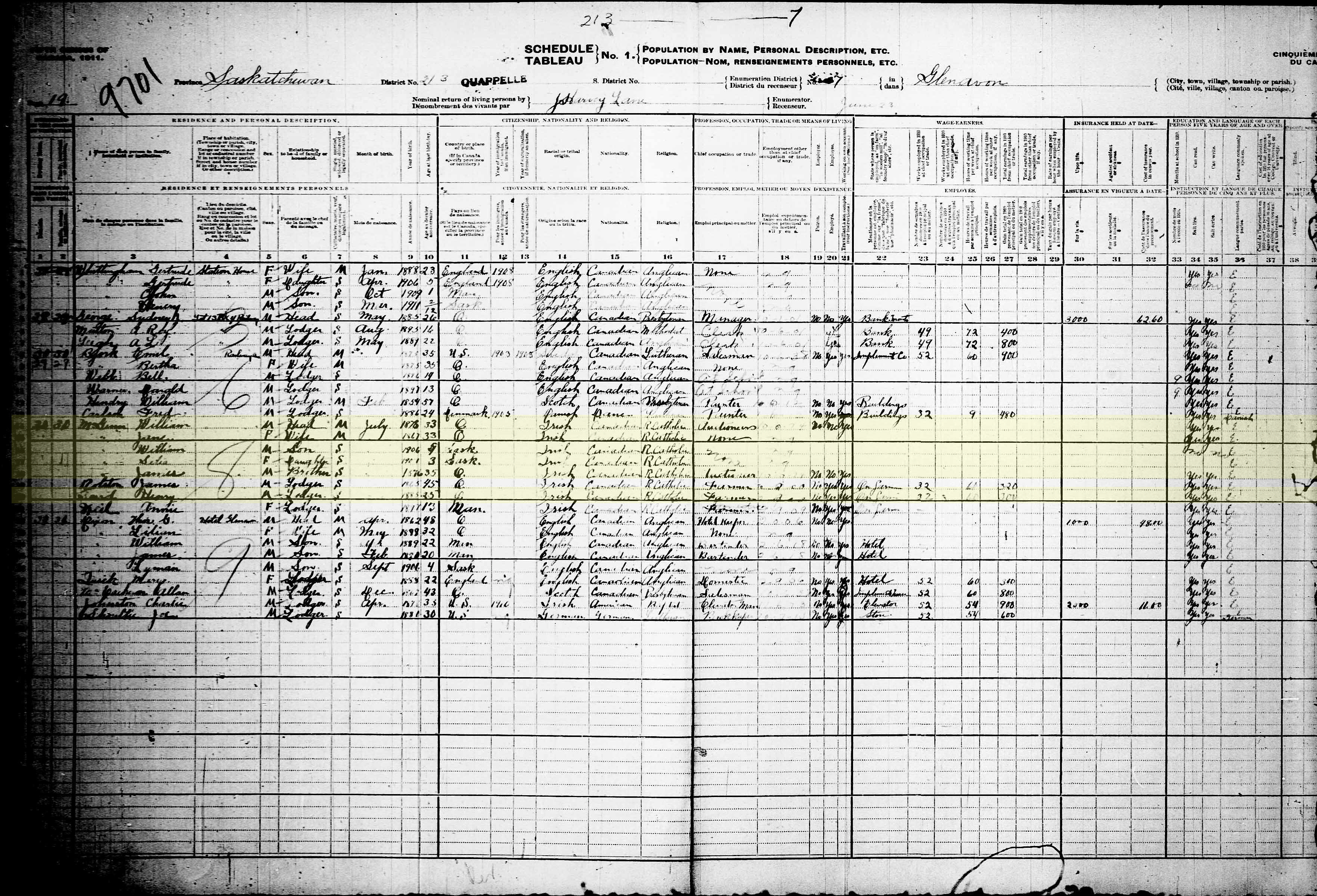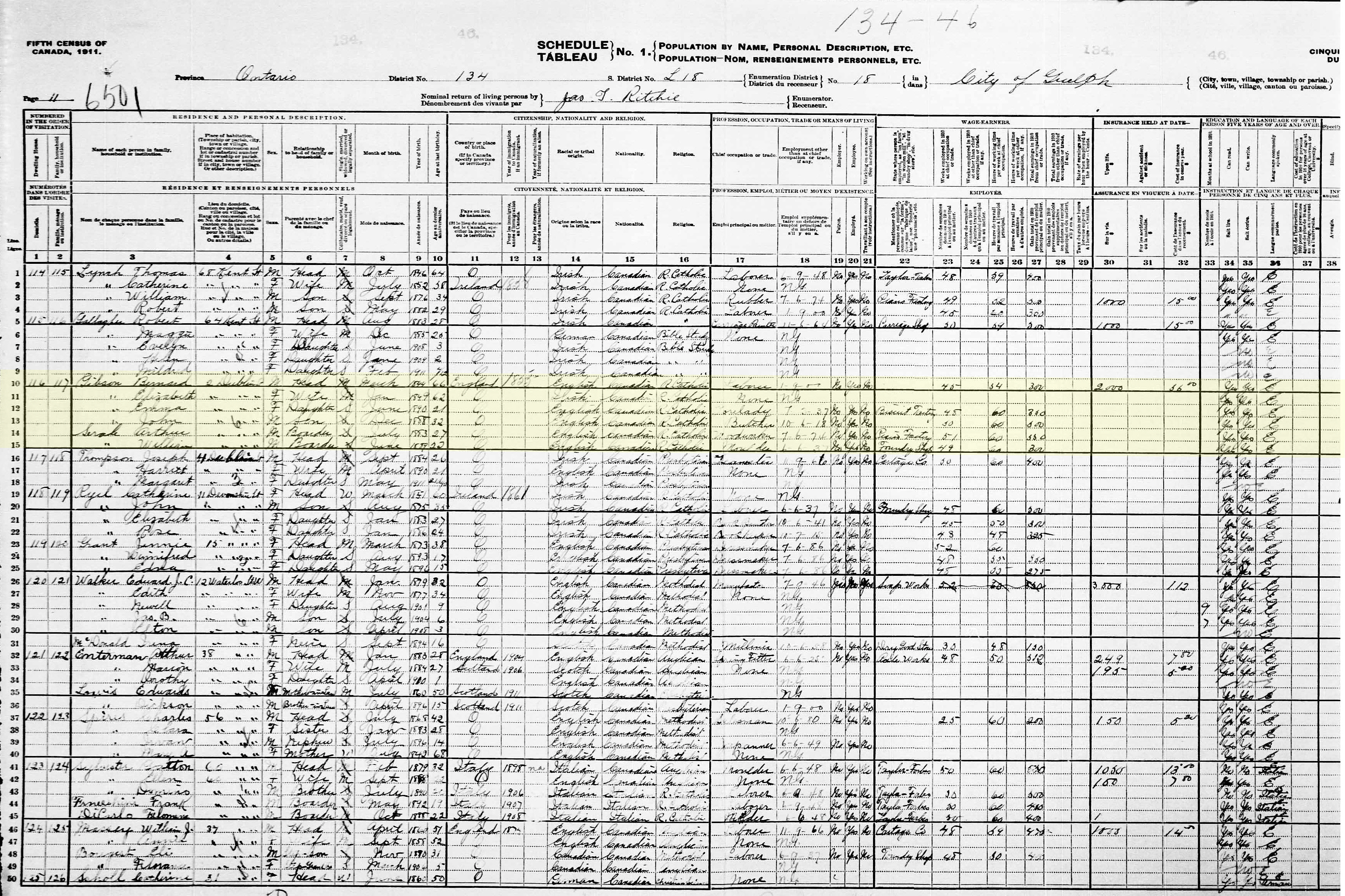 Birth: 17 November 1884 in the Township of Nichol, Wellington County, Ontario, Canada