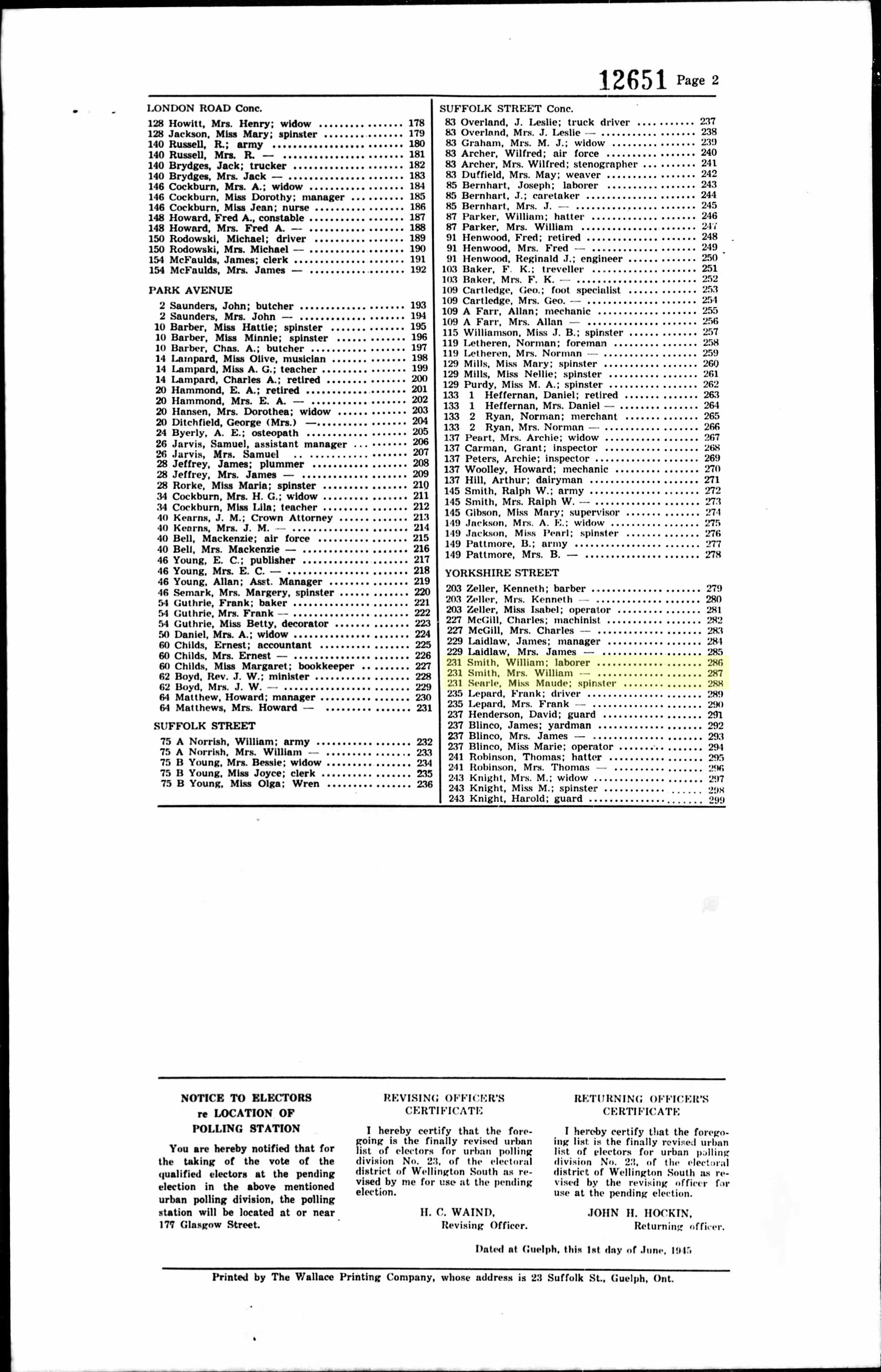 Death: 11 November 1946 in Guelph, Wellington County, Ontario, Canada