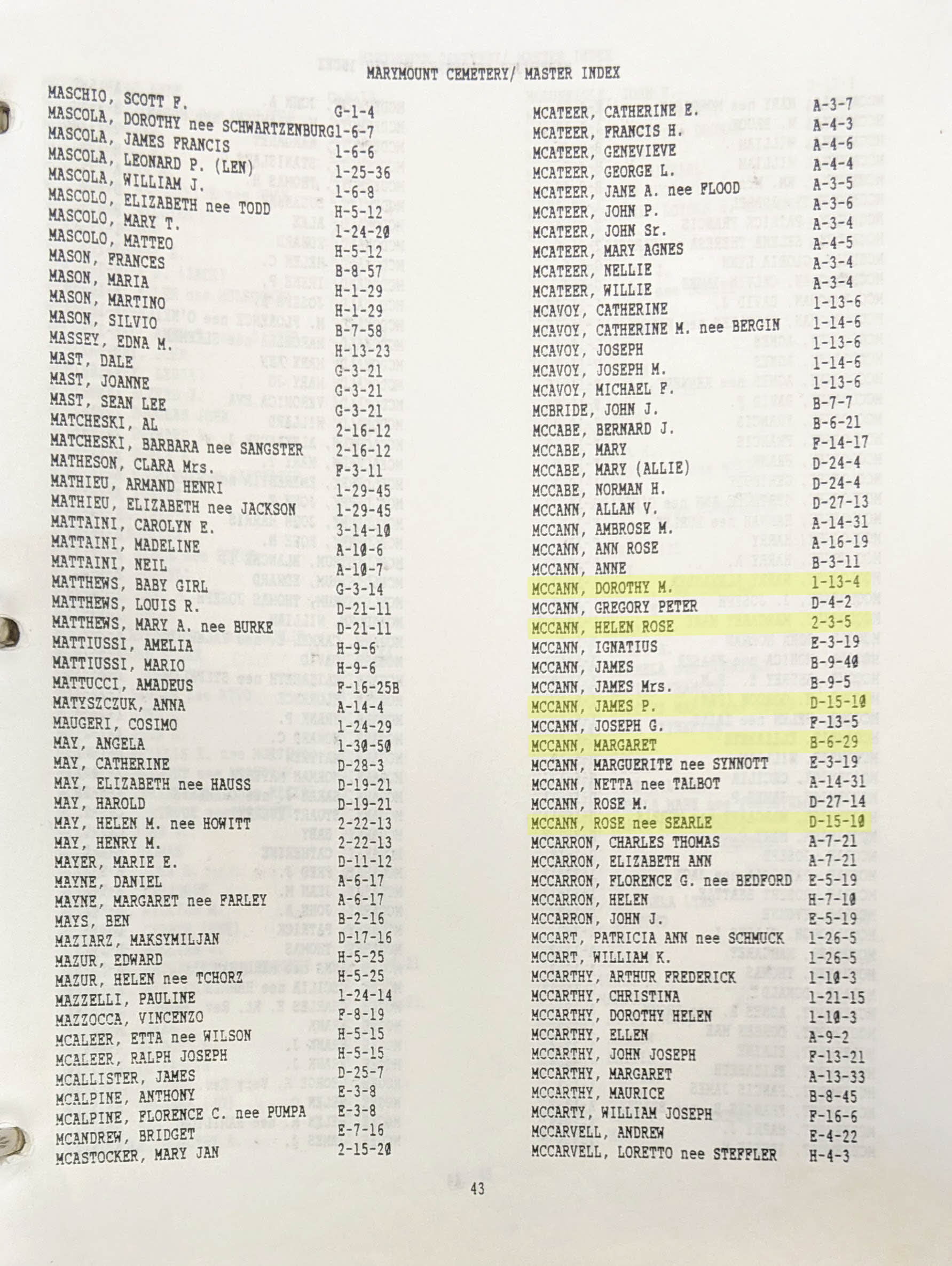 McCANN, ROSE M.
