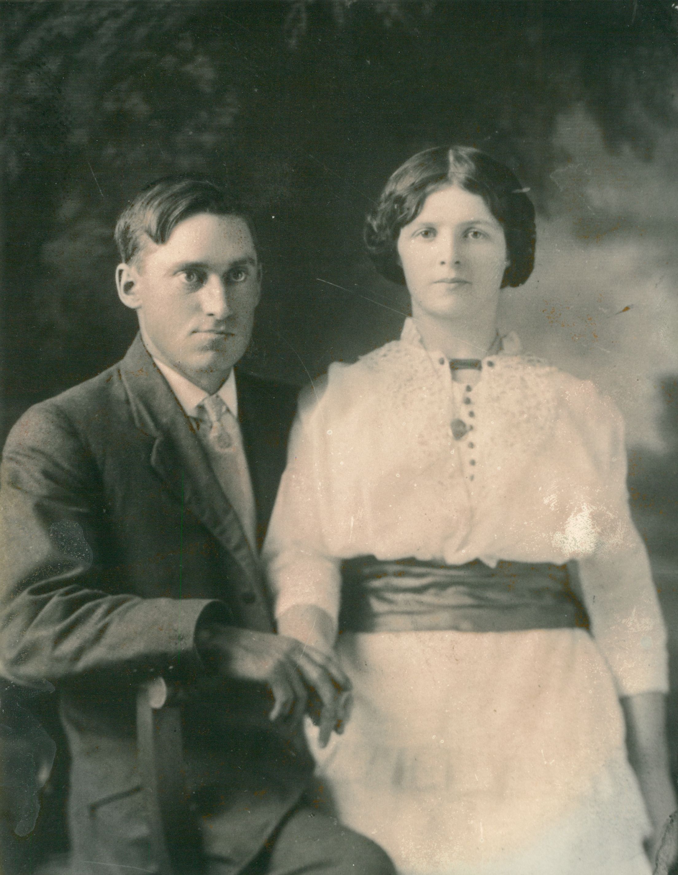 Arthur Searle and Isabella McGinn were both born in the Guelph, Wellington County area in Ontario in the late 1800s, moved separately to Saskatchewan in the early 1900s, got married in 1915, and had 9 children from 1915 to 1938. The family returned to Guelph following Arthur's death in 1940. Isabella lived in Guelph with her children and grandchildren until her death in 1979.